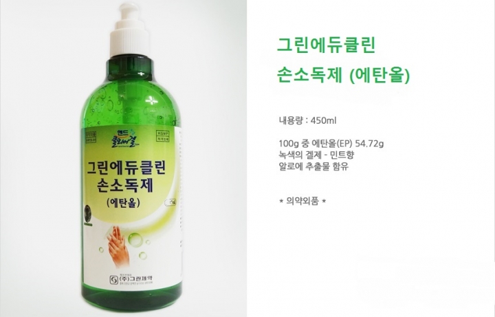 ※ [그린제약] 핸드클리어겔 그린에듀클린 손소독제 - 500ml