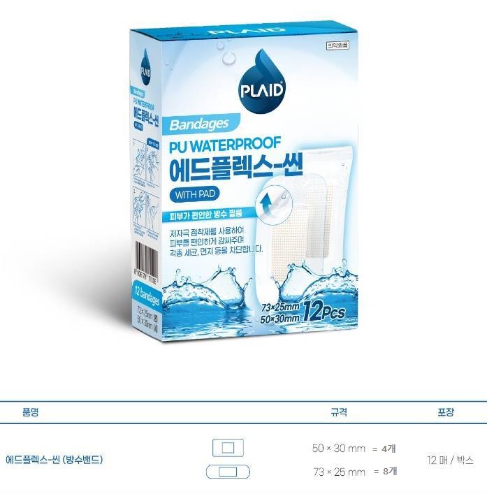 [영케미칼] PLAID 플레이드 에드플렉스 방수밴드(아쿠아밴드) - 방수반창고 / 방수필름 (혼합형 12매입)