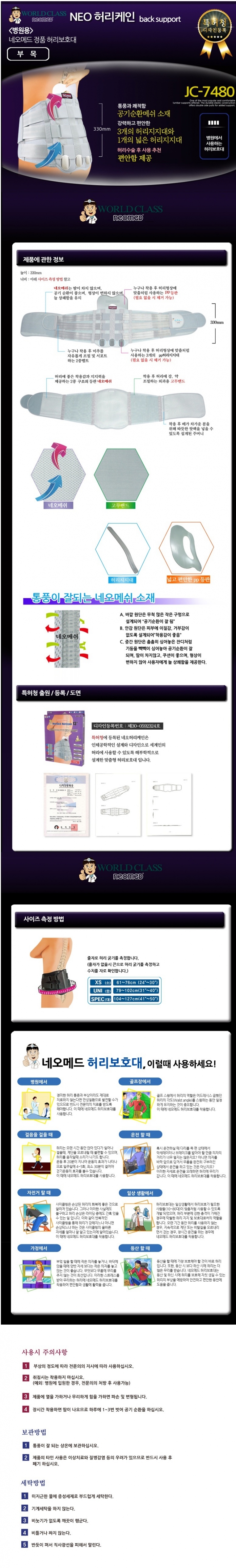 [네오메드] 백브레이스 (JC-7480) / 네오허리케인(허리보호대)